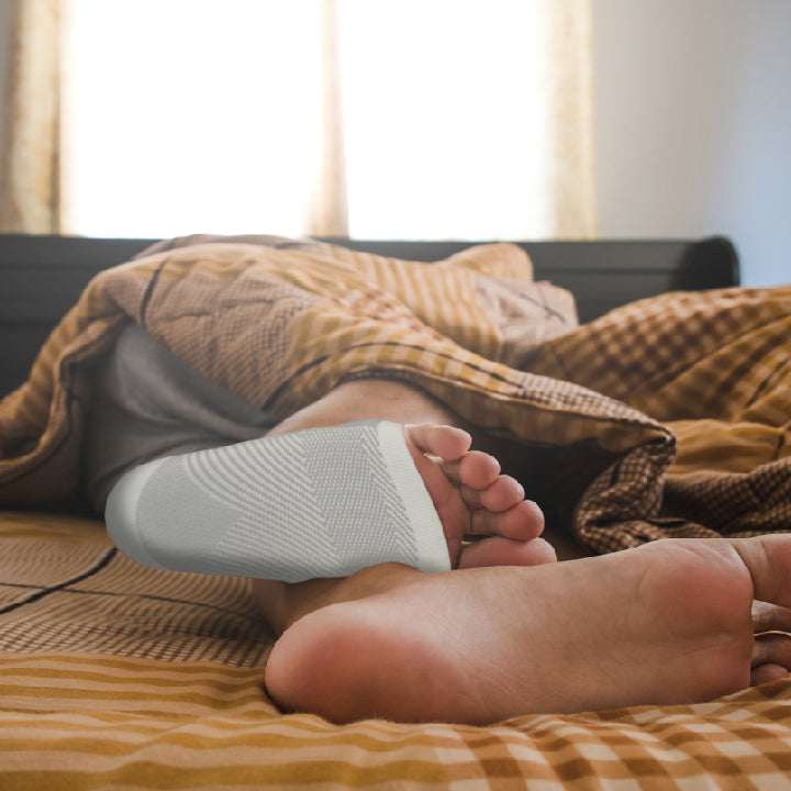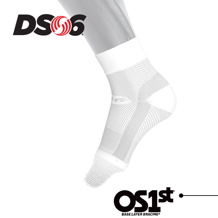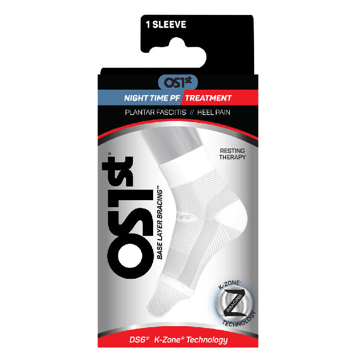 OS1st® DS6® Night Time PF Treatment 減壓足弓襪套。舒緩足部的專業護具,適合足底、足弓與足部不適者休息及睡眠時搭配使用,低張力彈性區域搭配前足凝膠給予穩定,並模擬「肌內效貼布(貼紮)」貼在腳上的效果,相較於傳統睡眠腳部固定器會更加舒適。